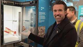 Rob Mac is impressed by a famous Mark Hughes goal as he tours the National Football Museum of Wales opening in Wrexham later this year.
