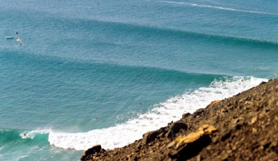 Lanzarote - 'the village left' on a small day. I also surfed 6 - 8ft La Santa on a 6' 0 ft board - slightly under gunned ! -