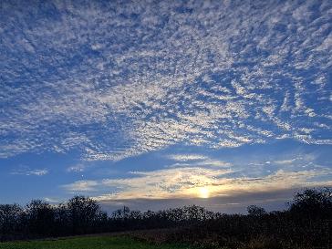 This afternoon will still see some bright intervals but it will soon turn widely cloudy from the south. Small chance of a few spots of rain developing in places later in the day.