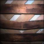 The roofs of the eastern chapels are built from oak timber dating back to the spring of 1222 and heralding from the forests surrounding Dublin. Peter Marshall of English Heritage's Scientific Dating Service said: "The findings are among a raft of significant results to come from research commissioned for a programme of major repairs grant aided by English Heritage and the Salisbury Cathedral Trust. They will greatly increase our understanding of major historic buildings and are likely to have a profound effect on how they are repaired in future."  | | Batten boards |