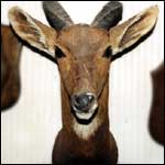 "You can write off to a company who'll provide you with the 'body' of a bear, an antelope, a moose or a coyote and two weeks later it arrives already cast for the taxidermist to then stretch a skin over," Shaun says. But once the skins are fitted and everything else is put in place the end result is most definitely a work of art - however macabre the practice might be for some. And Shaun's work hasn't stopped at animals. "I've had the odd request to do some human bits - I had a chap who wanted me to do his arm, which he had lost in a motorcycle accident, but I gave him a huge quote and needless to say he never came back to me!" Not surprisingly, Shaun's home has become a place to display his collection of mounted animals. The menagerie includes deer, fish, birds, a full-size lion, (which was put to sleep after suffering from too many fights whilst in captivity) and the head of a hippo, which grins at you as you descend the stairs. "The hippopotamus a Fibreglass specimen. It is difficult to preserve the real skin so you simply take a rubber mould from the dead hippo and fill that with Fibreglass mixed with the right skin colour," says Shaun. The result is something much more lifelike. But being so lifelike means it's tempting to believe that when darkness falls Shaun's animals come back to life only to return to their still-life positions once the sun breaks through the curtains. "It seems strange but I wish they could all come back to life," concludes Shaun, "but when they have died this is the best way of preserving their beauty." |