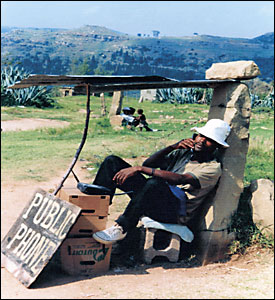 Lesotho: Relaxed telephone manner at an open-air booth with a view. From David P Ambrose, Ha Maama These snaps appear in the April - June 2008 edition of BBC Focus on Africa Magazine. |