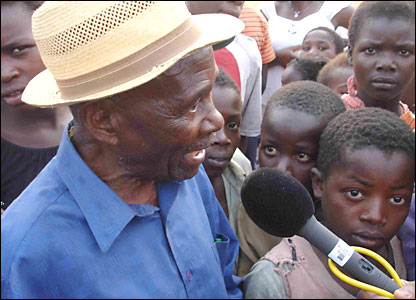 A man speaks into the mic at Michael Sata's Patriotic Front rally in Lusaka. |