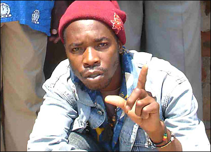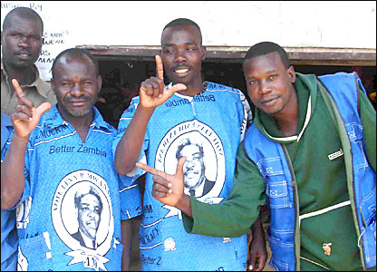 An Mwanawasa supporter in Chibombo brandishes the MMD salute.