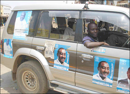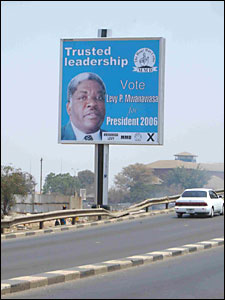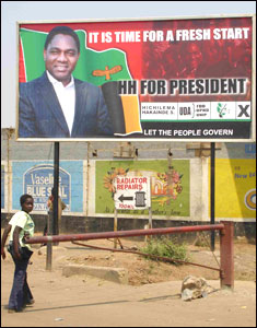Some prime ad space has been snapped up by the ruling party too. Here President Mwanawasa keeps an eye on drivers along a major road around Lusaka.