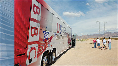 The bus set out on 10 September 2008 just as the sea change in America's economic prospects was becoming apparent.