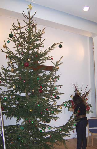 At Christmas we have a real Christmas tree (as opposed to an artificial tree). It's a big tree, as you can see!