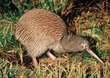 The kiwi is the sole survivor of an ancient order of birds including the now extinct moas. A flightless bird about the size of a domestic fowl, the kiwi has coarse, bristly, hair-like feathers. Females are larger than males.