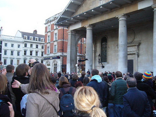I also went to Covent Garden which is not a garden with trees and grass. It is a market and there are so many interesting things to look at. I saw a street performer in front of the Market that was really interesting. Do you see him?