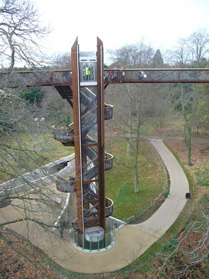Ok, getting back to gardens and parks in and around London. Well, Csilla and I visited Kew Gardens in southwest London one day. We went there on the Underground. I am always amazed how easily Londoners can travel and reach the destinations where they want to go. Anyway, so the gardens were marvellous. We spent the entire day there but we could not visit everything as the garden is extremely large. I think that people should visit this garden in every season because it could be so different in spring, summer, autumn and winter, for example we were not able to look at the blooming rhododendron or the herb garden, to name but a few. What I liked the best was the new treetop walkway which is 18 m high and 200 m long and takes visitors into the tree canopy. However, the leaves had all fallen so we could not see any birds sitting in their nests. What a pity! Anyway, I enjoyed this tour dearly. I have attached a couple of photos for you.
