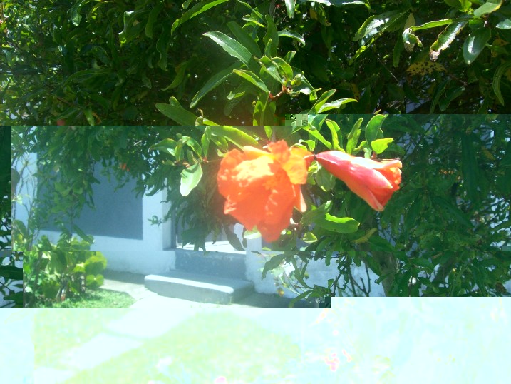 It´s said that the infusion of the pomogranate fruits or leaves is an effective remedy for sore throat. My house´s garden always have a space for this tree, which our family, friends and neighbours use when they come down with a sore throat. Apart from that, the tree is really beautiful and the flowers have a delicate orange color, the little seeds inside the fruit are reddish and taste sweet.