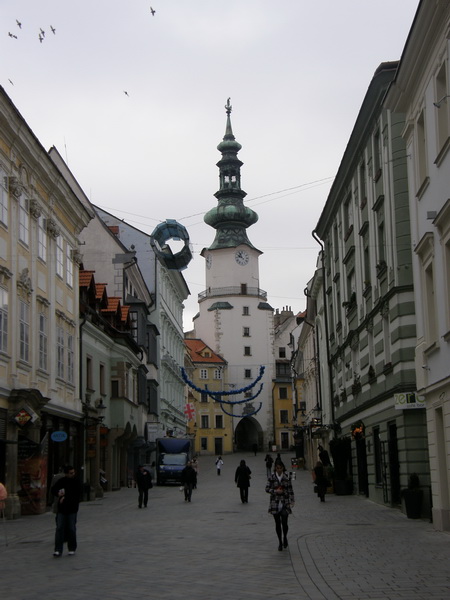 St. Michael’s Gate – it is one of the symbols of the town. A tourist attraction beneath St. Michael’s tower is the “zero kilometre” listing the distances of 29 world capitals from Bratislava