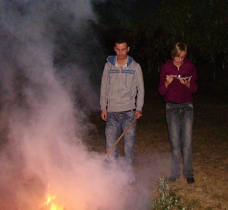 You'll be able to catch a glimpse of my sister this time ... and of Pirat, who was at first very excited that something was in the air, but then was very scared of the fire so I had to fiddle with him a bit