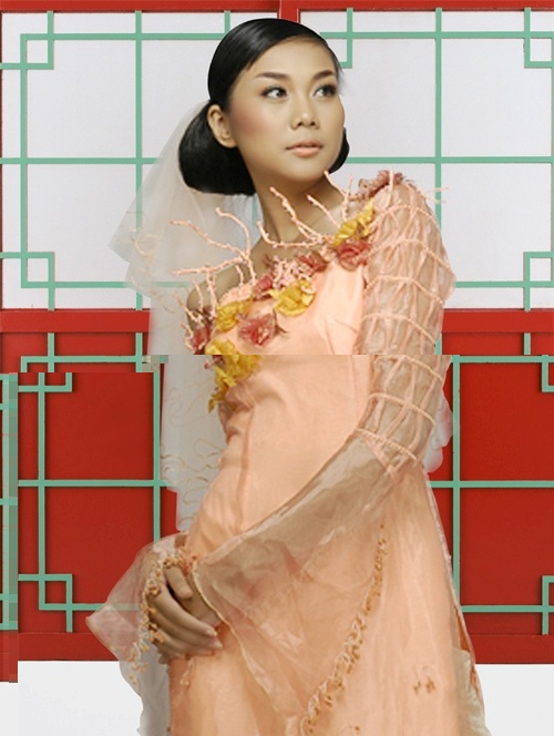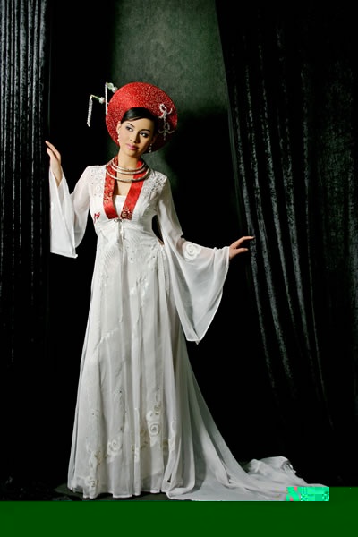 Nowadays, Ao Dais appear every where in the world. Vietnamese oversea women show their love to the country through Ao Dais. A symbolic example is Miss Asia USA contest and Jennifer Pham who showed Vietnamese spirit and make so special impression when wearing Vietnamese traditional dress was winner  Many foreign visitors have good impression on Vietnamese Ao Dais, they feel being warmly welcome when the image of Ao Dais flowing in the wind in the airports. It’s pity for those who travel to Vietnam without bringing back an Ao Dai as a souvenir to show off with those who have never been to Vietnam. Ao Dai is deserved to be called “ the Vietnam charming feature” c) Ao Dai is more and more famous in the world. In June 2001, this is first time “ Ao Dai” has been introduced in tour city (France) with a large number of approximately 300 Vietnamese cultural lovers. Ao Dai is considered an intangible cultural heritage of the Vietnamese people, A Singapore girl, originally Chinese native said: “ many people tend to make beauty under the western style, however, as for me and some want to inherit East Asian beauty. Ao Dai help us come back to Asian values”. In Asia bloc in particular and in western bloc in generally, much attention has been paid to “ Ao Dai” Take Susan, a British woman living in Australia for example. She worked in Vietnam and had three set of “ Ao Dai” to wear on great carnival. When she has returned her homeland, she wraps them up neatly and only wears them on special carnival. Asa means of introducing the country and the Vietnamese people, KBS- a famous south Korean television station – has ever made a 30 minutes film on Vietnamese Ao Dai broadcast in this country.