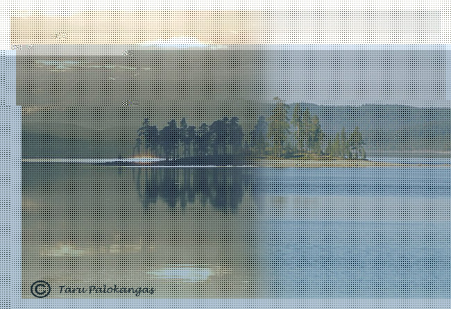 The background layer is a back side of a wooden puzzle. I had some photos of our journey to Northernmost Lapland and made from them by vector graphic puzzle forms. Added shadow with red tinge and color glide with outer glow upper part of picture. The gray background color is for readable colors of letters. The islet on Lake Rahajärvi (Money) pictured in the middle of the night and on the early morning. We were in Inari in Northernmost Lapland some years ago and spend Mid Night Festival there. As you see the sun did not go down at mid night at all it shines behind the islet and made the Islet black. The topmost layer is made by the pattern which is one to three black white.The colors of the texts should be in a balance with another part of photo. The colors are fixed with the parts of flower here. You can also see the difference to use shadow or not with a text. Lady’s Slipper orchid is a protected plant here in Finland. It grows in our village forests.And the same with Beverly emboss.This is made by vector graphic. The parts of Northernmost Lapland and Lake Inari are made with color glides. The lines are effected with shadow.Ice sculptures were quite light and not very visible at the origin picture. Blue color changes the spirit of sculptures. It is a real blue moment. I was coming back from Muonio and Olostunturi (Fjell Olos) to Rovaniemi on February. Just before the sun fell down I drove a car beside the road and took this. I have not done anything to this photo just and the text.Two layers and Beverly emboss cone. Nice harmony colors on later autumn. As I told I had taken a lot of details. This chain is actually a chain of a tractor wheel. The wheels are covered with iron chains to drive on a slippery road and ground. Anyway the chain can be taken where ever. The chain has a shadow which is the same item but it is turn to black and is situated to another back side layer. The ground layer is a color glide and the upper layer is made with pattern.This world is very visual. We are more and more targets of visual messages. Marketing consists in visual commercials. This is an informal part of learning photographic process. I don’t do this often but for me it is a way of learning something new by looking commercials. How they are made? What kind of colors they use? What kind of effect they have? If it is something very impressing I will try to create similar. For those who are interested in photos and processing them there is made a lot of books and web sites. You may search free programs and tutorials from internet if you just get addicted with it. This is a good hobby and takes all of your extra free time.
