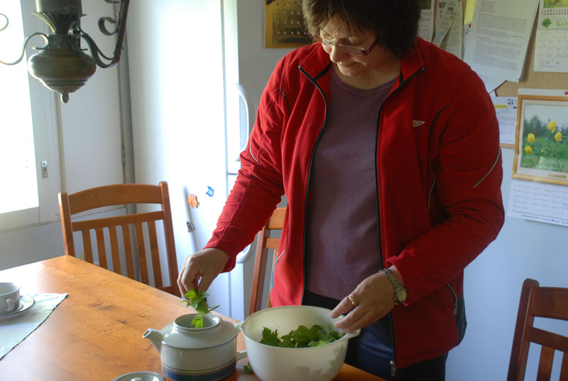 Wild herbs are very close to my heart. I think it was 1988 when I was involved with herbs and especially with wild herbs. Using mushrooms as a food has come to me by mother’s milk. In Northern Carelia, where I have born, it is very normal to use mushrooms as a part of every day’s food. So for a long time I have been interested in herbs and mushrooms. I have to just go out from house and look around what I could pick up and cook for something. On this spring I found some brain mushrooms and cooked from them very delicious souse. The brain mushroom is a different kind of mushroom. It rises up only on spring. If you think to have similar mushrooms on autumn you have to leave them alone. They are definitely mortally poisoned. The brain mushroom is also poisoned, but it can be cooked three times five minutes at least and change the water for every cooking. But one thing you can be sure, taste is gorgeous. I will link a web page which tells more about brain mushrooms. There are a lot of wild herbs which are possible to use now but I will show you what to do with black currant’s leaves. Herbs have a lot of good influences to human being. It is said that black currant promotes food digestion, prohibits flue and is good for piles. If you are going to use black currant’s leaves for health reasons you have to check all details somewhere. Information of herbs, berries and mushrooms you can find here .