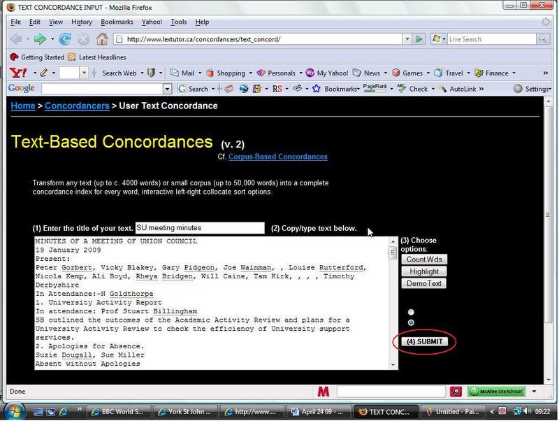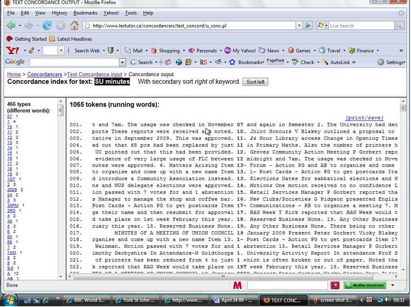 I’m going to show you how it works using an example of some minutes* from a York St John University Student Union Council meeting held on the 19th January 2009 (in which there was a discussion about whether the University library should be open 24 hours a day or not). The minutes are available on the Internet: