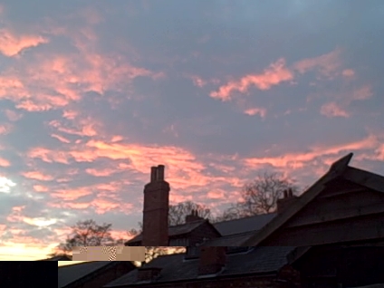 I’m hoping for some nice weather so that we can sit in the garden (possibly while eating cake...). It’s been raining on-and-off all week in York, with temperatures of about 10 degrees centigrade. Tonight there was a reddish sunset, which you can see here in this short video made by my special assistant, Clara (aged 12):