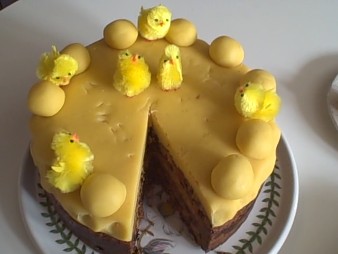 I mentioned my Mum’s Easter cake in my last post. I did manage to make a short video of it yesterday (after it had already been cut, but before we had eaten any!). Here’s the video: