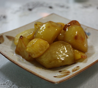 The food I’d like to introduce is fried sweet potato with syrup, called Mat Tang in Korean. We usually eat it for dessert. If you have a sweet tooth, I bet you will love it! It’s not difficult to cook, so why don’t you try it today?