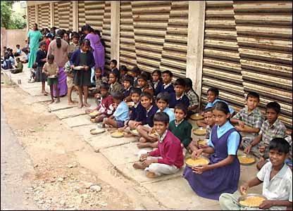 Seven years ago there were 300,000 children within a 50 kilometre radius of Bangalore in India who'd regularly spend the whole day without eating a meal.