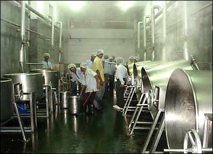 This is thought to be the biggest kitchen in India. The kitchen makes food for 125,000 children everyday and all this is made in just 5 hours. Each container has the capacity to cook over 100 kilograms of rice in just fifteen minutes.