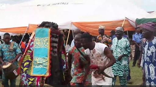Kọmisana fun ọrọ asa ati irinjo afẹ nipinlẹ Osun, Obawale Adebisi ati asoju ẹka to wa fun agbelarugẹ asa Yoruba, Ọmọọba Popo Toluwase, Oba Olusina Oyekole se fi ọwọ wẹ ọwọ.
