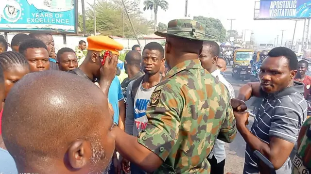 Ninu fọnran aworan kan to tẹ BBC Yoruba lọwọ, ọpọlọpọ awọn ọlọpa ati awọn oṣiṣẹ ile iṣe ologun orilẹ-ede yii ni wọn wa nibẹ iwọde naa.