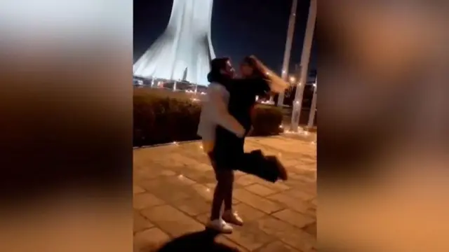 Fidio ti wọn fi lede lo ṣafihan bu awọn mejeeji ṣe n jo ti wọn di mọ ara wọn ni agbegbe Tehran Azadi (Freedom) Tower.