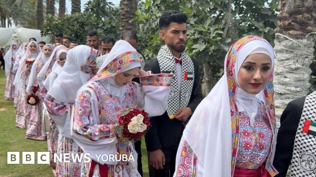 Ayẹyẹ ọhun to waye ni Deir al-Balah ni iroyin sọ pe wọn ti mu awọn tọkọtaya ọhun laarin eeyan ti iye wọn to ẹgbẹrun meji.