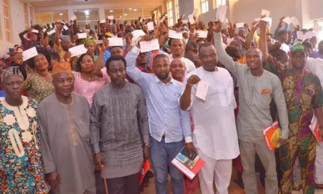 Lasiko to n fun awọn oluranlọwọ tuntun naa ni sọwedowo ẹgbẹrun lọna ọọdunrun naira ninu ọgba fasiti Fortune ni Igbotako nijọba ibilẹ Okitipupa, aṣofin naa rọ wọn lati fi owo naa ṣe nkan ti yoo mu igbe aye wọn dara ju ti atẹyinwa lọ.