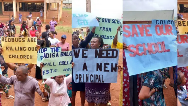 Lara wọn akọle ti wọn kọ si awọn patako ni “A n fẹ oludari míràn,” “Adisa Balogun ma pa FSTC Usi run,” “Àwọn ọmọ wa kò rí itọju dáadáa ní FSTC Usi,” Eto ẹ̀kọ́ àwọn ọmọ wa nílò ayipada lọwọ Balogun, ìjọba àpapò ẹgba wá.”