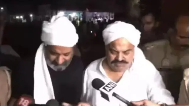 Atiq Ahmed ni awọn ẹṣọ ọlọpaa to yii ka lasiko to n ba awọn oniroyin sọrọ lori amohunmaworan ni ilu Prayagraj nigba ti eeyan kan fa ibọn yọ lẹgbẹ ori rẹ.