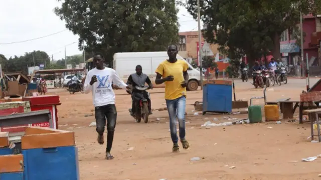 Bakan naa ni iro ibọn n dun lakọlakọ ni olu ilu Burkina Faso, Ouagadougou pẹlu awọn ọkọ baalu, ti wọn si n kọja ni ori awọn eniyan.