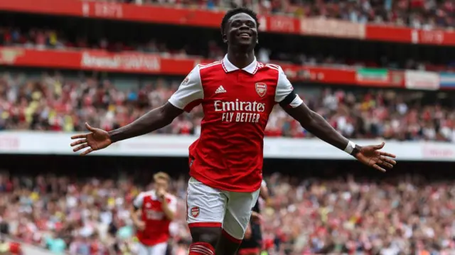 Bukayọ Saka naa gba bọọlu wọle sawọn ni igba meji.