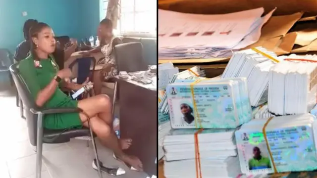 Fídíò náà tó gba orí ayélujára kan ṣàfihàn àwọn òṣìṣẹ́ INEC tẹ̀ka FESTAC Town, ìjọba ìbílẹ̀ Amuwo Odofin, ìpínlẹ̀ Eko tí wọ́n ń yọ nọ́mbà káàdì ìdìbò ìyẹn VIN tí wọ́n sì ń kọ ọ́ sórí fóònù wọn.