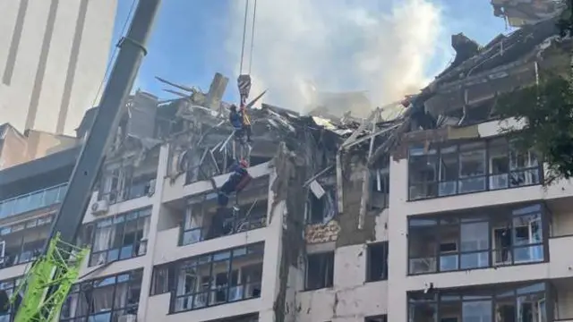 Gẹgẹ bi Mayọ ilu Kyiv', Vitali Klitschko ti wi, "ọpọ eeyan lo farapa” nitori ikọlu ado iku naa eyi to ba ilegbe kan ni deede aago mẹfa abọ aarọ oni.