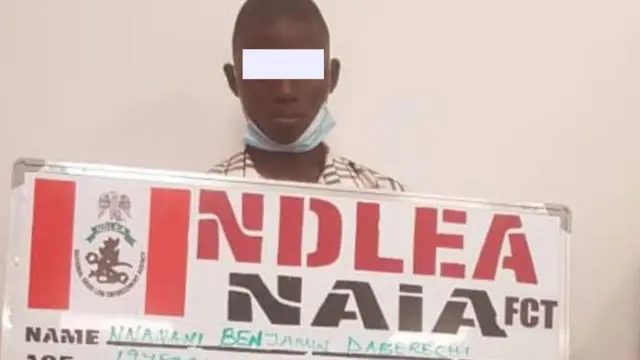Ọmọ ọdun mọkandinlogun naa ti orukọ rẹ n jẹ Benjamin Nnamani Daberechi ni ọwọ tẹ ni papakọ ofururu Nnamdi Azikiwe International Airport ni ilu Abuja.