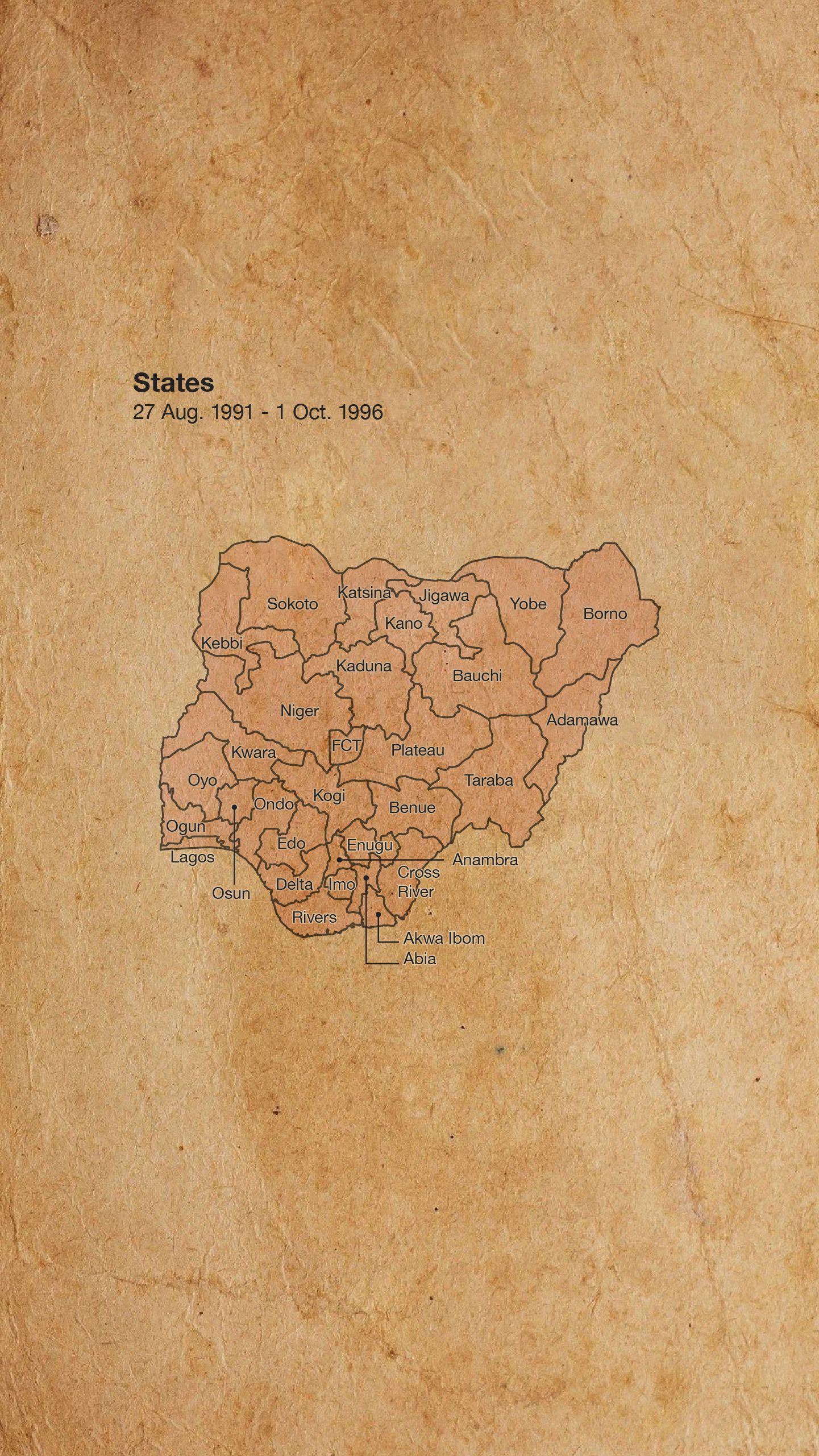 Ni ọjọ kinni oṣu kẹwaa ọdun 1996, Ọgagun Sani Abacha kede idasilẹ ipinlẹ tuntun mẹfa mii: