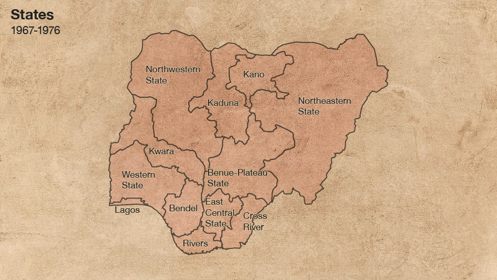 Lẹyin ọdun meje, ni ọjọ Kẹtadinlọgbọn osu Karun ọdun1967 ni olori orile-ede Naijiria nigba naa, Ọgagun Yakubu Gowon pin Naijiria si ipinlẹ mejila lẹyin t'awọn ẹya kekekee n ṣaroye pe, awọn ẹya to pọ n jẹ gaba lawọn lori.