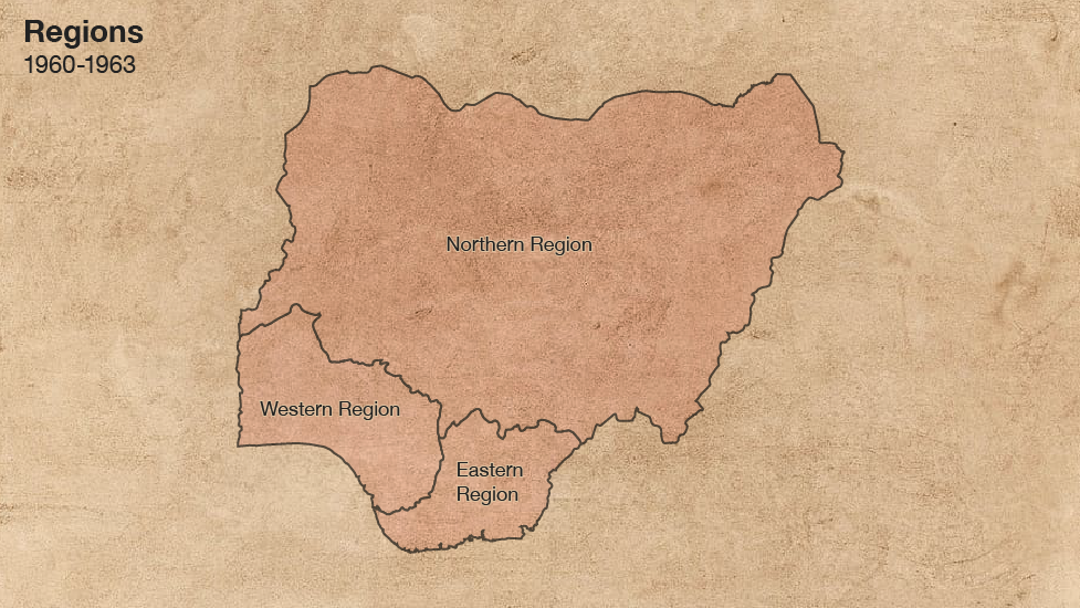 Naijiria pin si ẹkun mẹta tii ṣe: Ẹkun Ariwa, Ẹkun Iwọ oorun ati Ẹkun Ila oorun lẹyin iwe ofin tuntun ti aṣoju ijọba Ilẹ Gẹẹsi, Arthur Richard ṣe lọdun 1949. Awọn ẹya Hausa ati Fulani lo pọju lẹkun Ariwa, Yoruba ni Iwọ oorun ati Igbo ni Ila oorun.