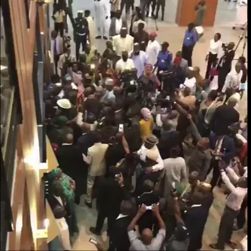 Fidio yii n ṣafihan aarẹ ile aṣofin agba Naijiria, Bukọla Saraki, bo ṣe n fi gbọ̀ngàn ilé aṣofin silẹ̀ lẹyin to so ijoko ile to waye l'ọ́jọ́ kẹrinlelogun, oṣu Keje rọ di ọjọ kẹẹdọgbọn, oṣu Kẹsan.