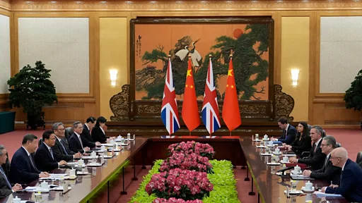 正在訪華的英國首相施紀賢爵士(Sir Keir Starmer)到北京人民大會堂會晤中國國家主席習近平。這是自2018年來中英兩國首腦首次在北京會晤。