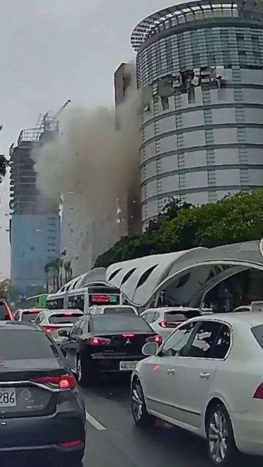 根據現場畫面顯示,該百貨公司12樓「美食街」所在的樓層外牆,在上午約11:30時瞬間被炸出大洞,大量破碎的磚塊和建材伴隨著灰色粉塵從高處墜落。