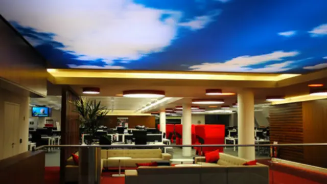 维珍集团旗下的金融公司维珍金融(Virgin Money) 在爱丁堡的中心,整个办公室的屋顶画上了蓝天白云。坐在办公桌稍向上望,目光所及一片天空令人遐想。