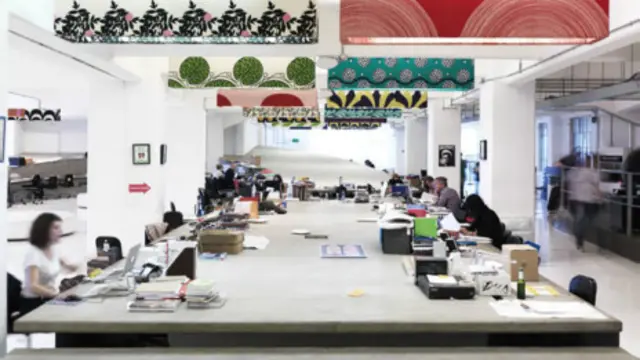在伦敦的一家广告公司Mother, 办公室的设置没有尊贵上下之分。所有公司的员工都围坐在同一张水泥材料的巨大无比的办公桌前。公司认为这有助于员工的交流并消除公司管理人同员工的隔阂。