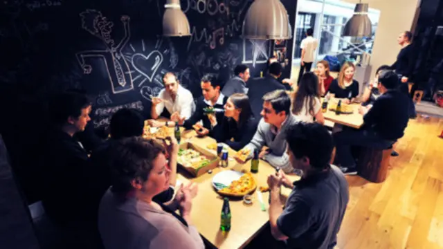 社交网站Badoo的办公室里有一面巨大的黑板墙。上面有不断更新的参加各种派对的邀请和公司的产品信息。办公室里还设有摇椅,台球桌和享受自然光线的屋顶平台。象前面提到的其它办公室一样,这样的设计也是为了鼓励员工之间的相互交流。