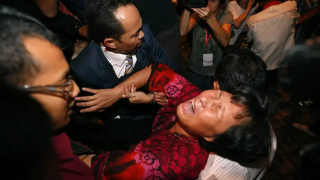 中国乘客家人情绪失控被带离记者会现场