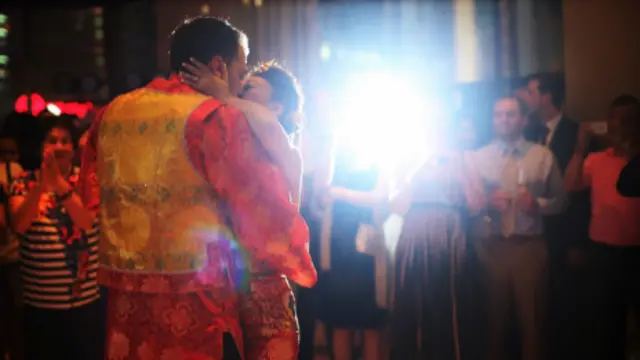 敬酒的时侯,小孩会被抱起来然后亲一下,不论长幼,他们都会举起杯来,与新郎和新娘碰杯。此刻,我只感受到两个相爱的人受到家人和亲友的祝福。渐渐的,中西文化的差异也消失了。
