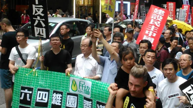 支联会副主席蔡耀昌说1989年香港人声援北京学生的大游行有150万人,是香港重要的历史,而他认为香港人会坚持下去支持平反六四:“我们相信香港市民会继续出力为六四这个公义问题去表达,除了今天的游行,我们亦呼吁各位市民晚上八点钟到维园点起良心的烛光。。